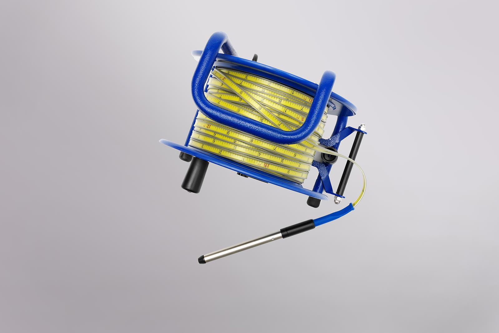 黄色胶带比较醒目,在127 kg(280磅)的负载下可以抵抗拉伸,从而获得更高的准确度。读取静态液位读数,然后轻松切换到水位下降模式进行低流量试验和泵测试。此外,防护等级为IP68的探针可以浸入300 m(1000英尺)以上深度的井中来确定井底。